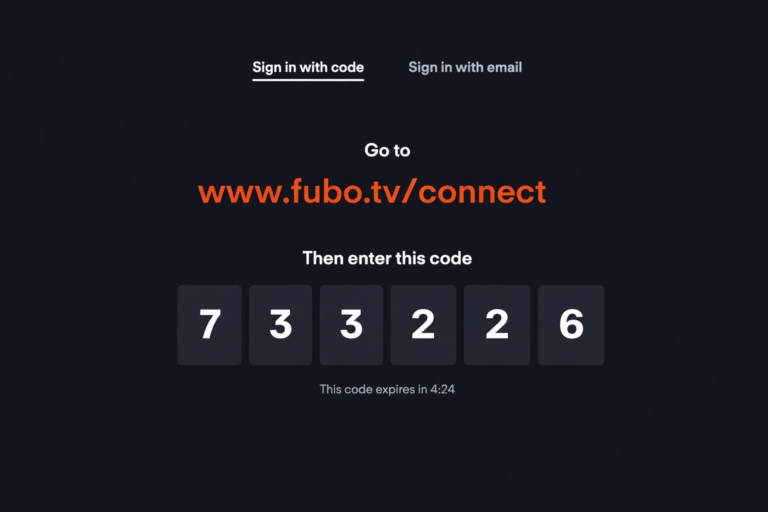 Open the Fubo app on your Smart TV and select “Sign In with a Code.” A 6-digit code will appear on your screen. On your phone or computer, visit fubo.tv/connect, log in to your account, enter the code, and your TV will activate in seconds.