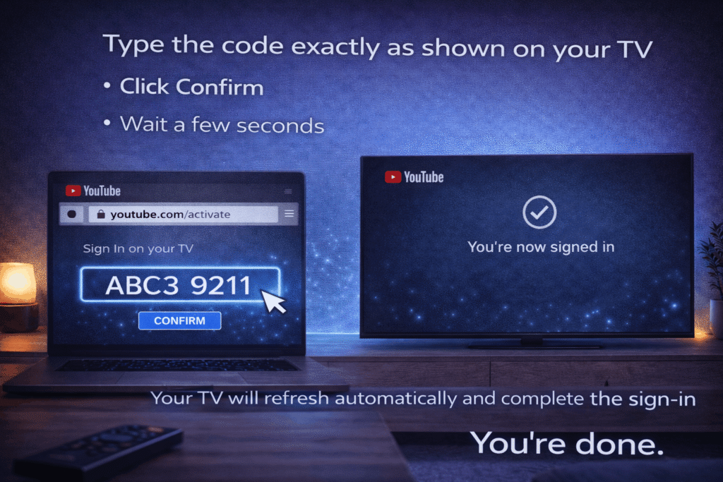 To sign in to YouTube on your Smart TV, open the YouTube app and select Sign In. Choose the option to sign in with a web browser, and a code will appear on your TV screen. On your phone or computer, visit youtube.com/activate, log in to your Google account, enter the code shown on your TV, and confirm. Your TV will refresh automatically and complete the sign-in process within seconds.